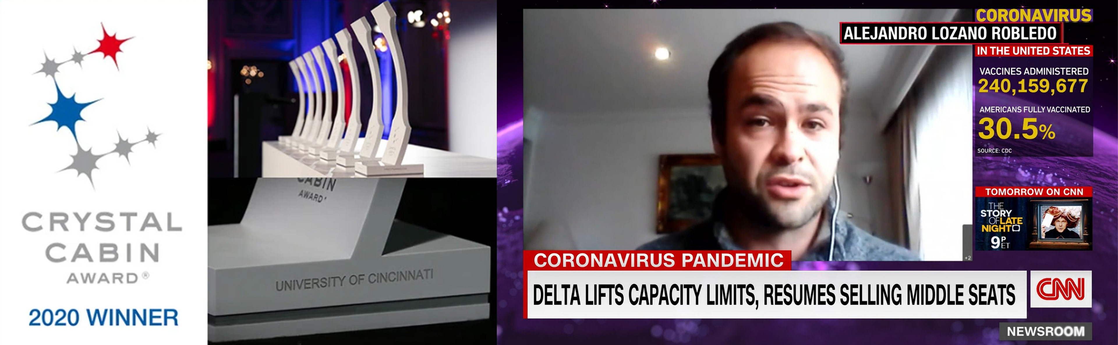 The concept won the 2020 Crystal Cabin Awards in Hamburg, Germany. This is the global aviation industry event of the year. Further outcomes were presented in news outlets like CNN and C-12 alongside multiple media articles.