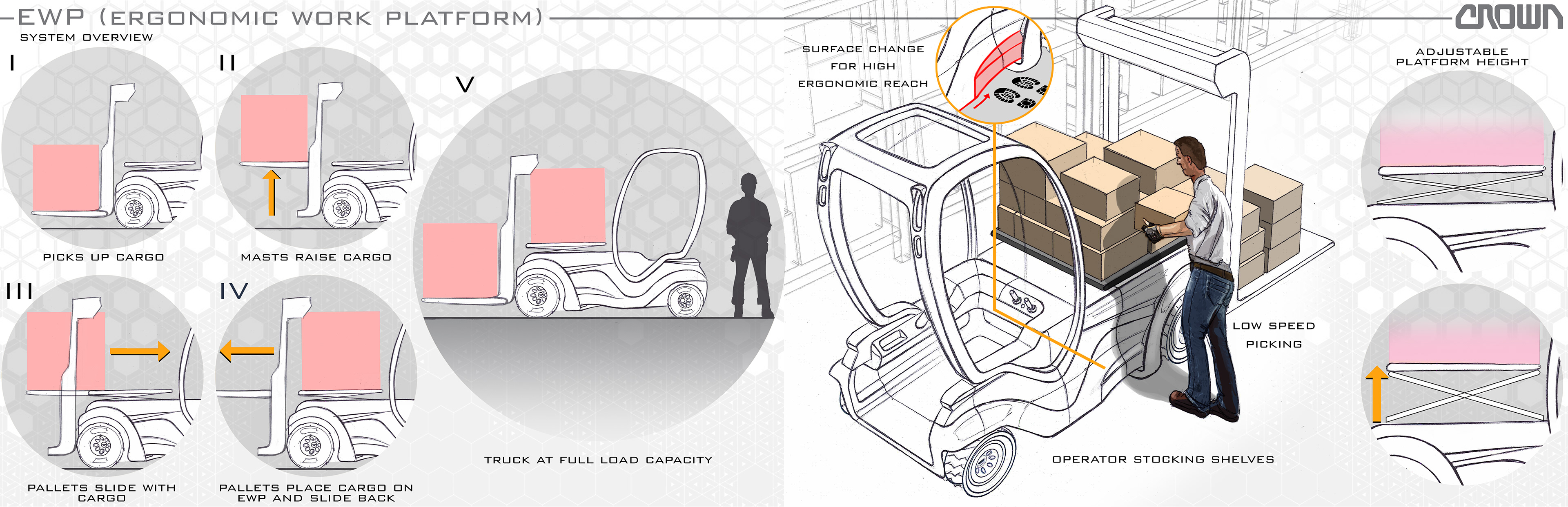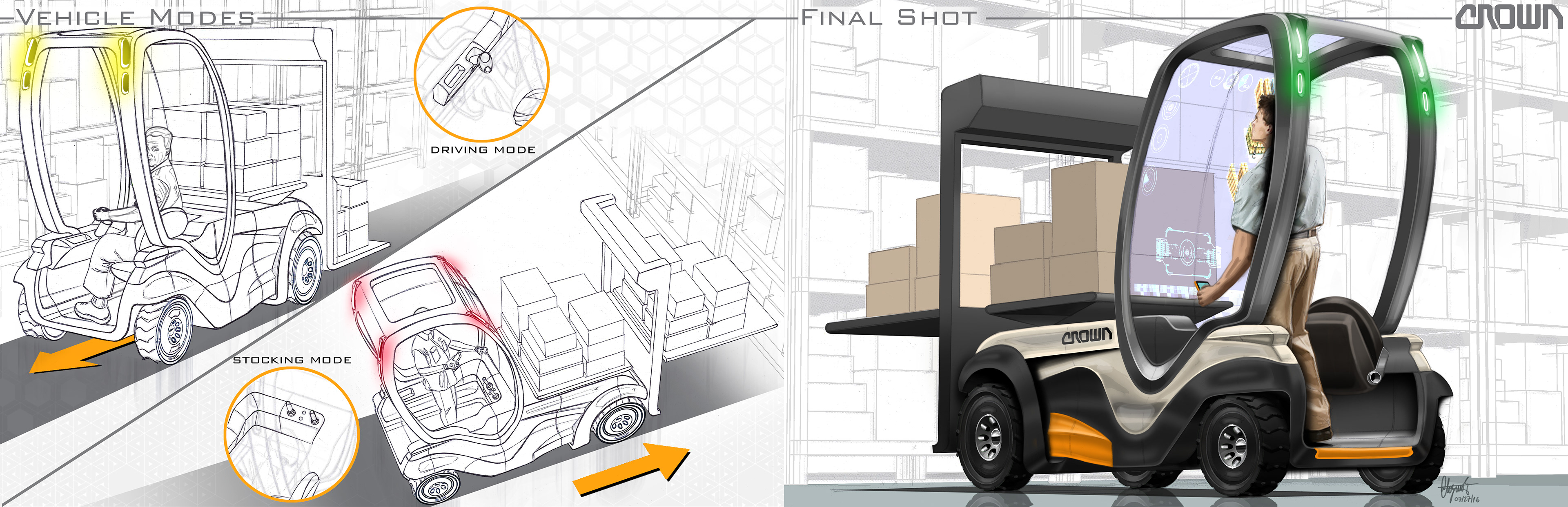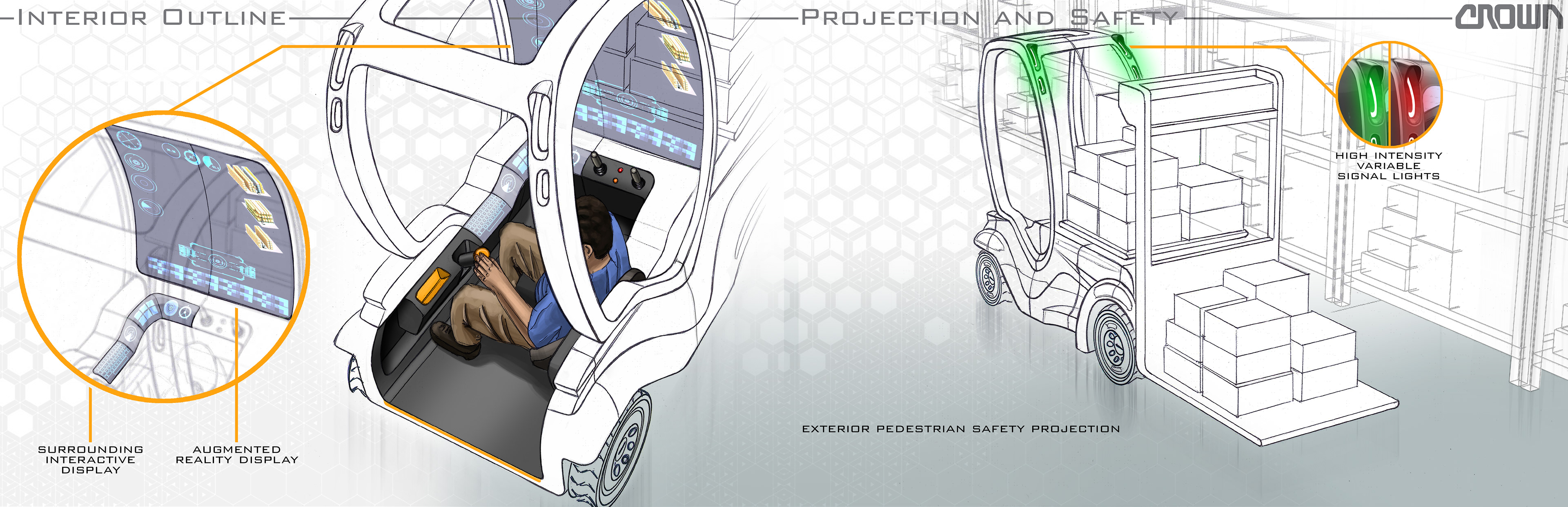 CROWN Equipment Corporation Transportation Design Internship Personal Project. A confident addition to counterbalance trucks that provides unique adaptability and groundbreaking innovation.
