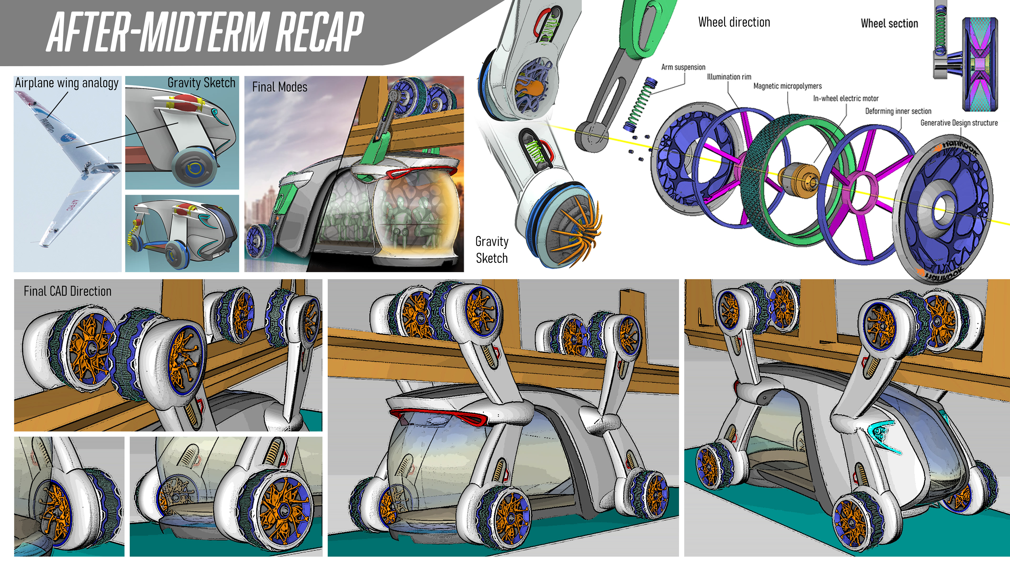 From sketches to Gravity Sketch, back to sketches, CAD, Gravity Sketch and Final CAD