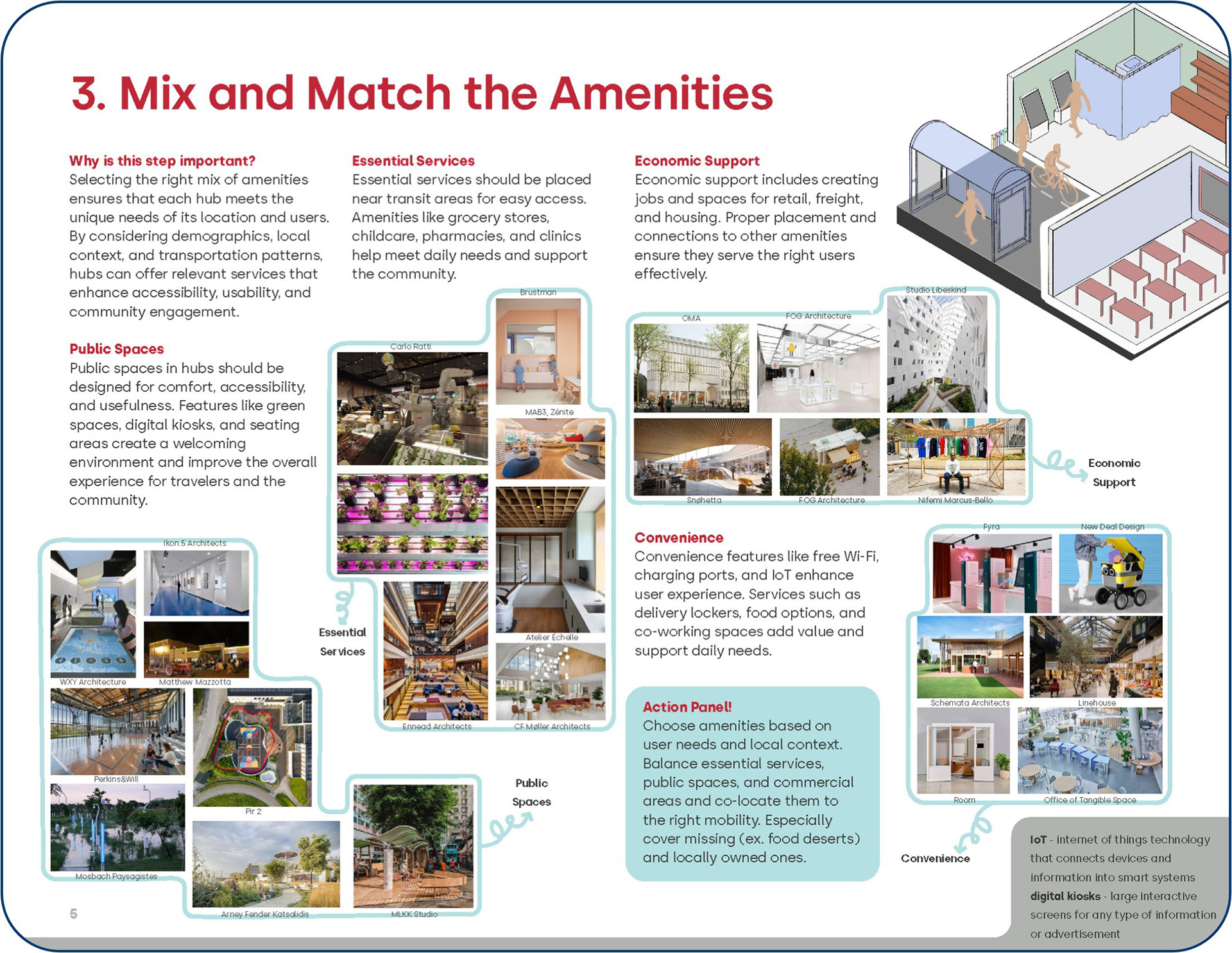 This phase focused on translating research insights into actionable concepts and planning strategies for future community and mobility hubs. Using proprietary human centered and systems oriented ideation methods, qualitative and quantitative findings were synthesized into modular hub components, spatial configurations, and service scenarios. Through iterative concept development, cross disciplinary collaboration, and early validation, this phase produced a portfolio of hub concepts and typologies that responded to local needs while remaining adaptable, scalable, and aligned with long term policy and infrastructure goals.