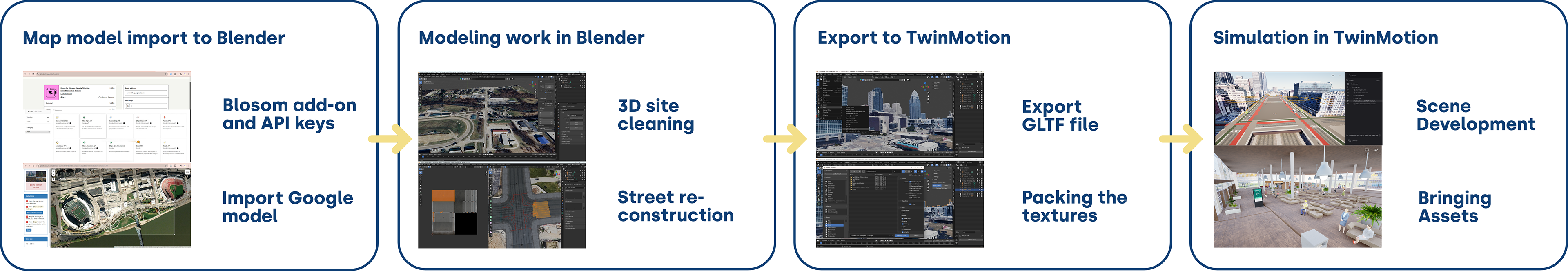 Rather than dictating fixed solutions, the Playbook is designed to encourage collaborative adaptation to local conditions, allowing communities to adjust inputs and outcomes based on their specific social, spatial, and policy contexts. Functioning as both a technical resource and a facilitation tool, the 4 pillar structure lowers barriers to civic engagement by combining human centered research, data driven insights, and immersive technologies into a shared, easy to understand planning process.