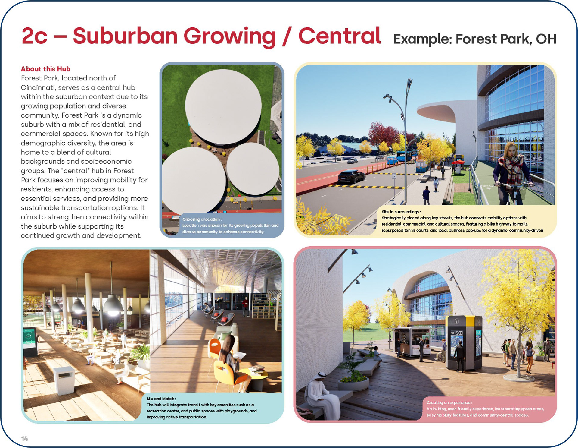 To inform the design of future hubs for Ohio communities, the research examined global access inequities and future ready hub models from around the world. This work highlighted how car centric planning and limited infrastructure have historically restricted access, while global precedents demonstrate the potential of integrated hubs to serve as community anchors that promote equity, economic vitality, and spatial inclusion. These insights established the foundation for proposing inclusive, people centered hub solutions tailored to diverse local needs.