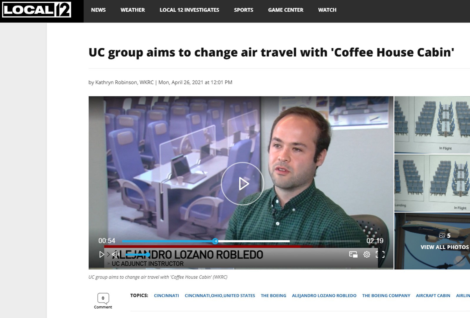 News Interview, Local 12: Coffee House Cabin Concept