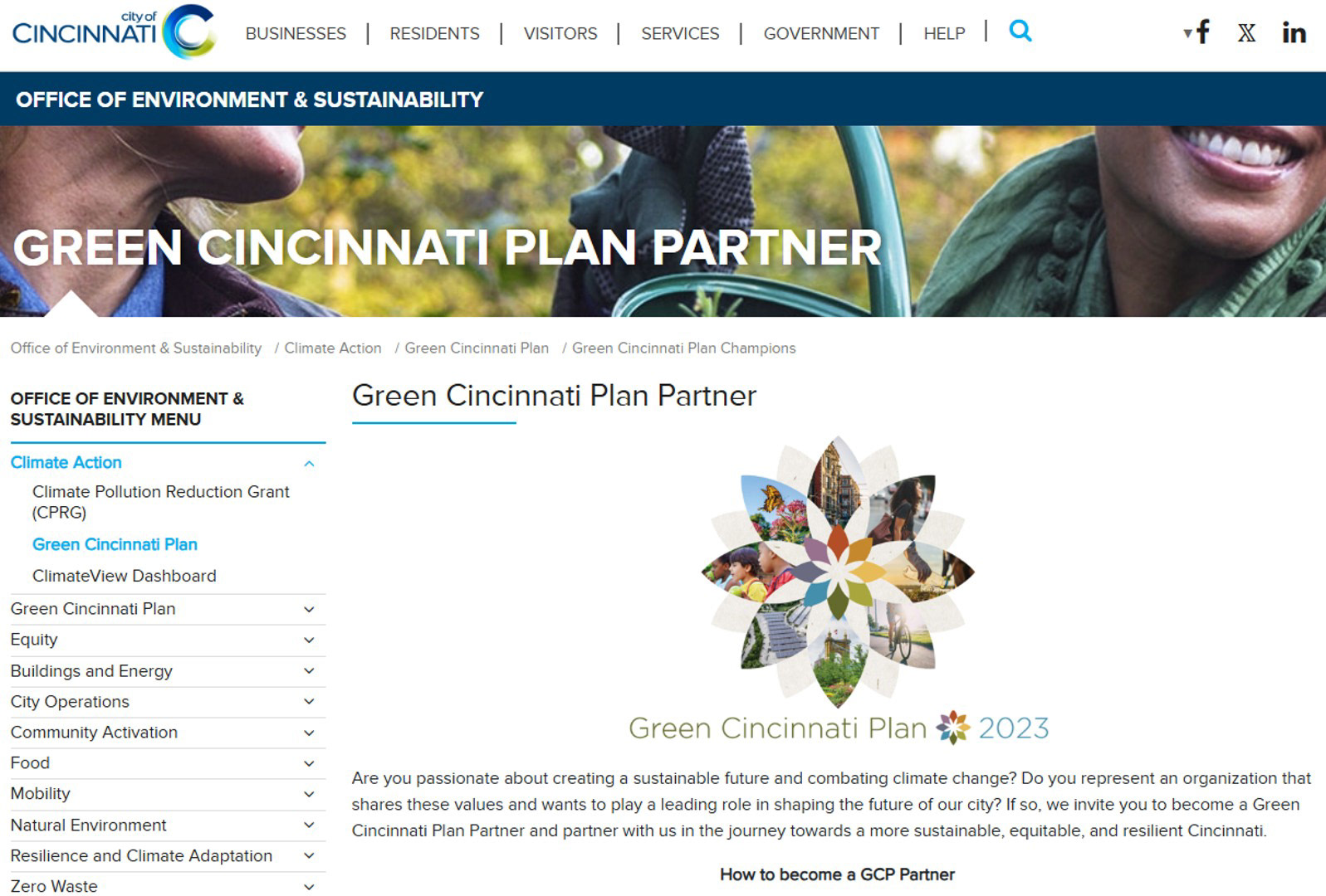 City of Cincinnati Website, Green Cincinnati Plan Partner