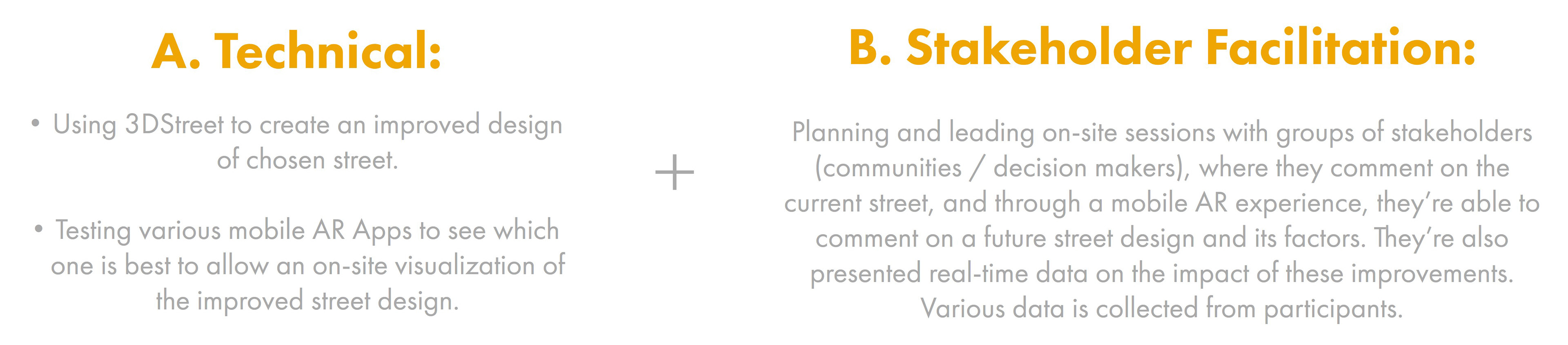This project represents a major collaboration between the Future Mobility Design Lab, the MIT Media Lab, and 3DStreet, with local implementation support from the City of Cincinnati. The goal was to develop and validate a scalable, technology enabled and participatory methodology that allows communities and decision makers to better understand, evaluate, and co design future streets and neighborhoods. The project focused on lowering barriers to participation by combining mobile augmented reality, data driven design, and structured facilitation, enabling stakeholders to engage directly with future scenarios on site and in context. The two main components were: